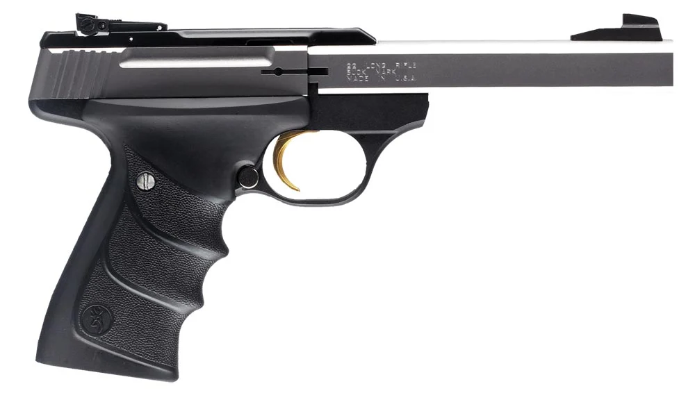 Browning Buck Mark rimfire pistol has lead the industry in quality, reliability, accuracy and variety. It starts with a piece of aircraft-grade 7075 aluminum alloy and then is CNC machined to exacting tolerances. The crisp single-action trigger, hand reamed chamber, target crowned barrel and finely adjustable target sights mean the Buck Mark comes ready for fun straight from the box. The slide features built-in recess and raised side panels for better grip, and a convenient manual slide release which is easily operated with the shooting or support hand. It also has grooves plus slide cocking “ears” at the rear making racking the slide back even more convenient. The Buck Mark also utilizes a large manual safety and mag release adjacent to the trigger guard. Includes pistol rug and magazine.
