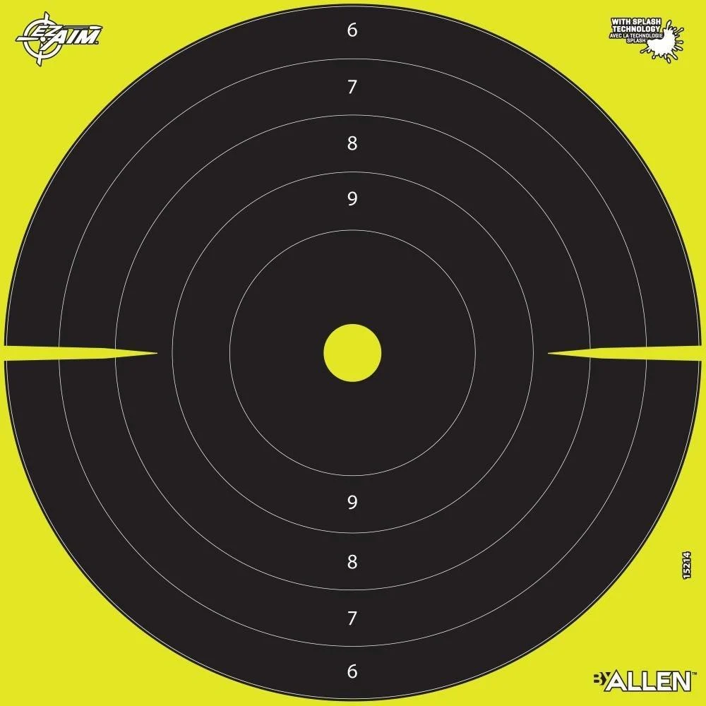 EZ-Aim 15213 Splash Reactive 8″ Bullseye Hanging Paper 8″ x 8″ Black/Yellow White 25 Per Pkg