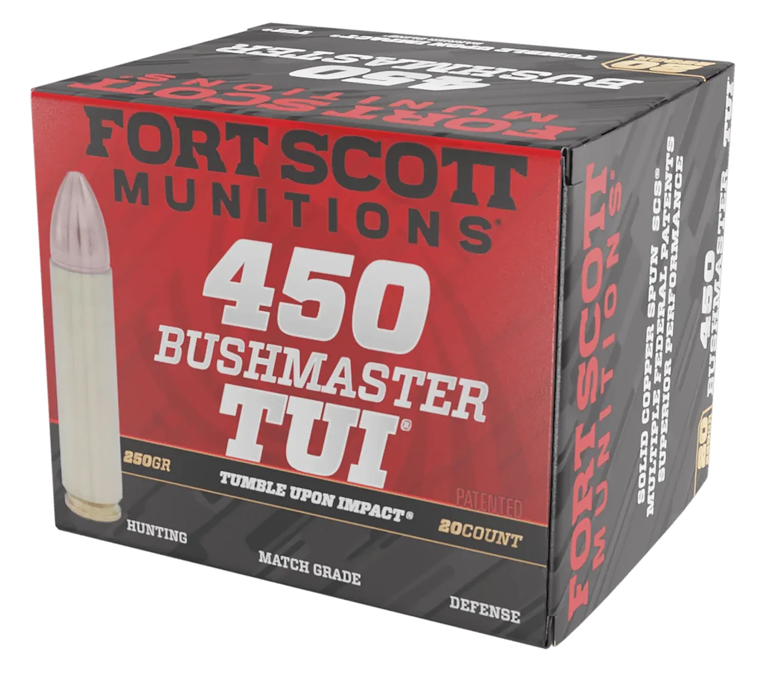 Fort Scott Munitions TUI ammo is a match-grade bullet made of solid copper and engineered to Tumble Upon Impact providing devastating stopping power. While designed as precision ammo for rifle hunters, Fort Scott’s multi-patented TUI technology also makes them ideal rounds for home and self-defense or law enforcement.