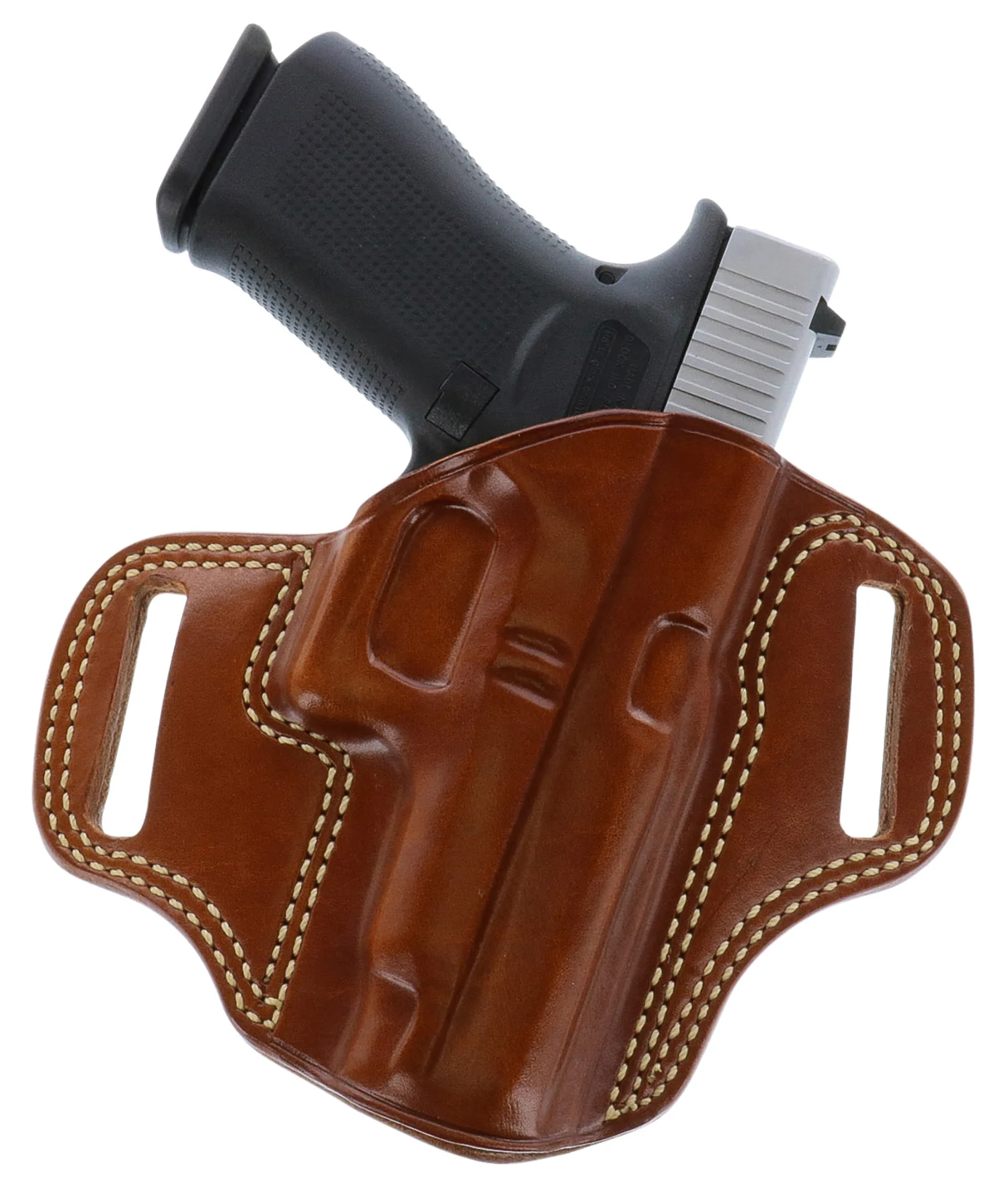 The Combat Master is a professional-grade belt holster hand-molded to fit specific handguns. Its traditional high-riding pancake-style design places the belt slots on either side of the holster, pulling the handgun tight to the body and making defensive handguns disappear under even light clothing. It features an open top with firing grip accessibility for speed. The twin belt slots fit belts up to 1.75″ wide. Fits Springfield XDM Elite 4.5″ 9/10mm.
