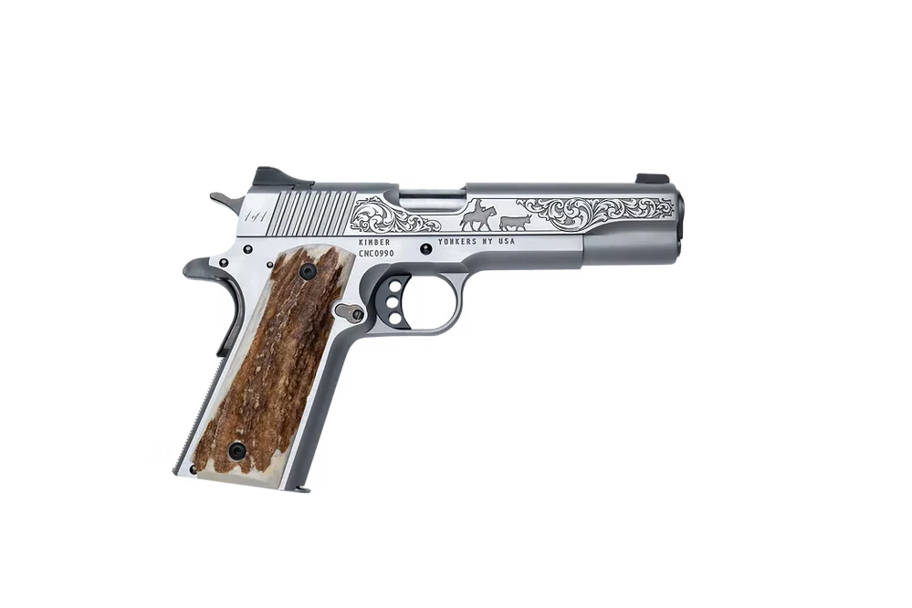 KIMBER CUSTOM CATTLEMAN 1911 45ACP PISTOL STAINLESS ENGRAVED, STAG GRIPS 1 OF 200 MADE