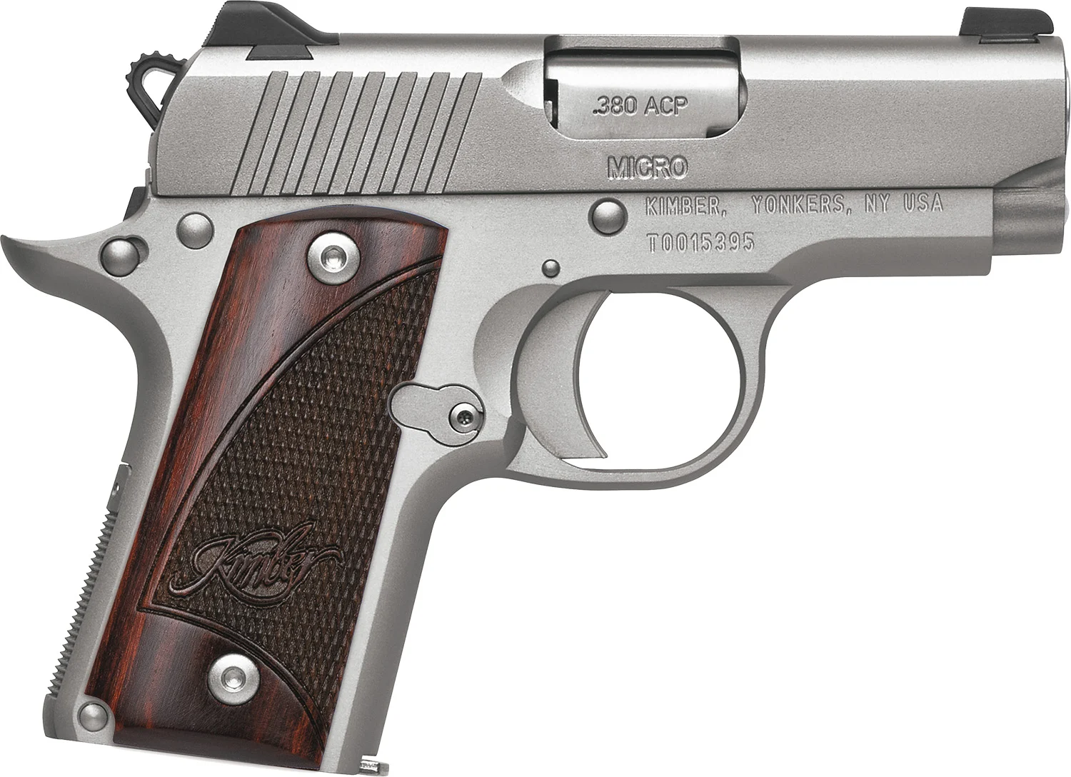 Kimber Mfg.,inc 3300207 Micro Stainless Rosewood NS 380 ACP 7+1 2.75″ Stainless Steel Slide Satin Silver Smooth/Checkered Rosewood Grip
