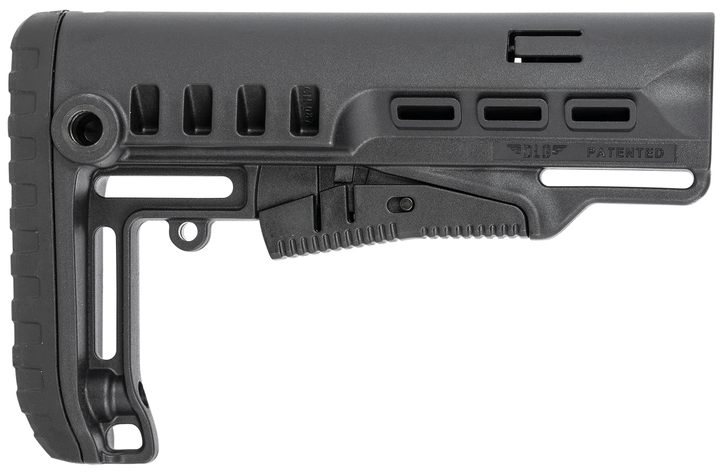 The Tactical Mil-Spec stock is scompatible with MIL-SPEC buffer tubes. It features a sleek design with metal QD base on each side for QD slings and several molded in 1.5 sling loops. An integrated rubber butt pad for non-slip secure shouldering, comfort, and recoil mitigation. This stock also features a unique latch mechanism, first click for adjusting stock position and a second full click for mounting/demounting from the buffer tube.