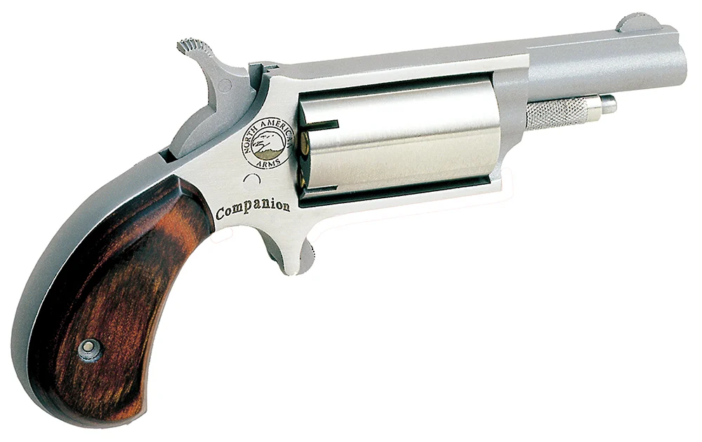 The NAA Companion is a percussion (cap & ball) .22 magnum caliber five shot revolver, engineered by the legendary gun designer, Dick Casull. The Companion uses a #11 Percussion Cap and FFFFH or Pyrodex powder. The NAA Companion is available for sale without going through an FFL Dealer in the United States because it is a black powder firearm.