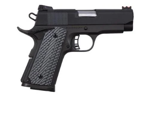 The Rock Ultra compact is built in traditional 70 series design and delivered with our precise engineering standards and first rate upgrades. This pistol is chambered in 45 ACP with a 3.50” button rifled barrel supported by a full length guide rod. Smooth angled snag-free style allows for quick draw in fast need situations. Includes a low profile adjustable rear sight and high visibility fiber optic front sight. Also includes skeletonized hammer and trigger with adjustable over travel stop and ambidextrous safety which comes standard in the Rock series. The Rock Ultra is finished with a tough parkerzied matte coating and adds battle ready G10 tactical grips. True to all Rock Island 1911s the Rock Ultra comes with a crisp factory 4- to 6-pound trigger to give you a great experience right out of the box.
