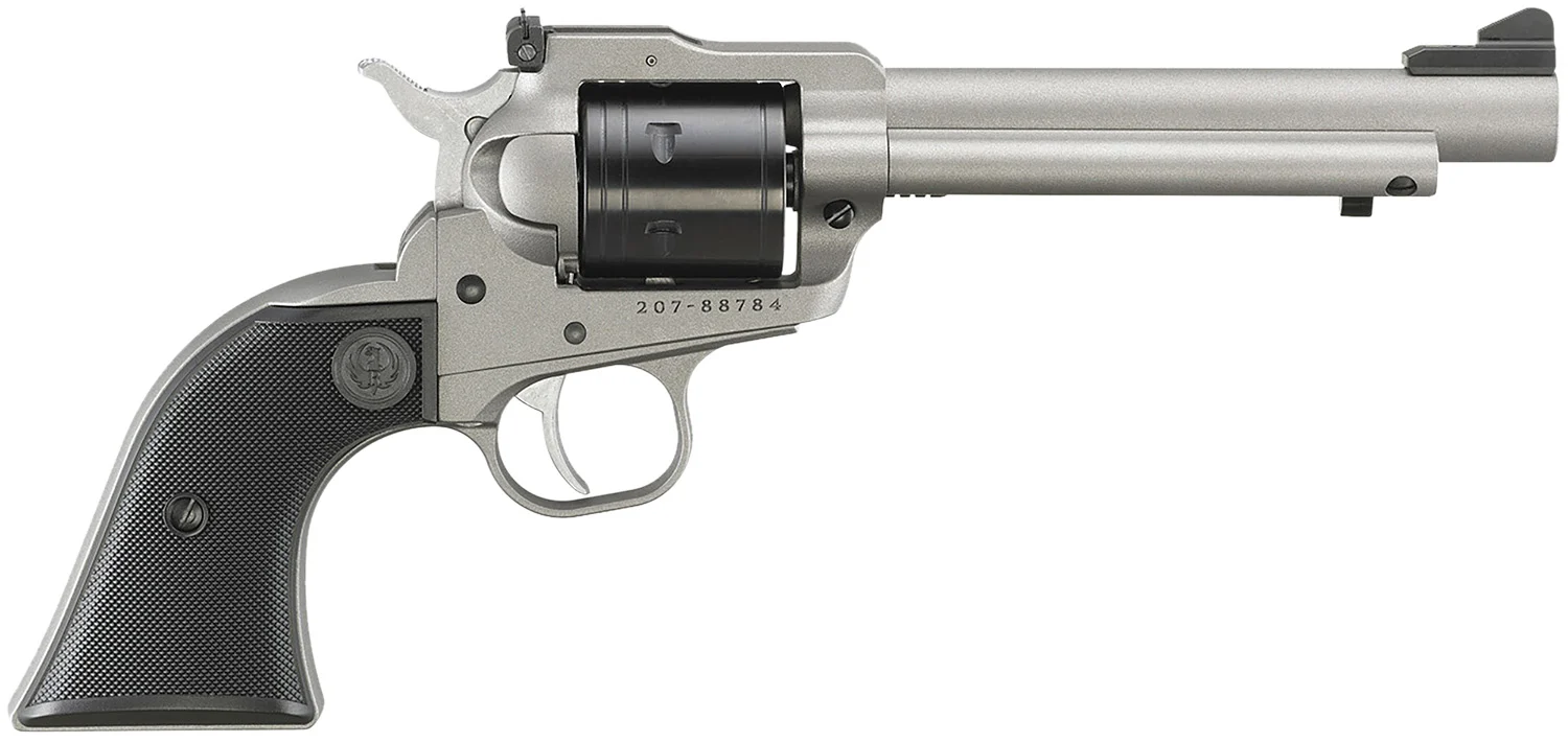 Ruger 2033 Super Wrangler 22 LR/22 WMR 6 Shot 5.50″ Silver Cerakote Steel Barrel & Frame, Black Cylinder, Black Checkered Polymer Grip, Transfer Bar Safety, Exposed Hammer