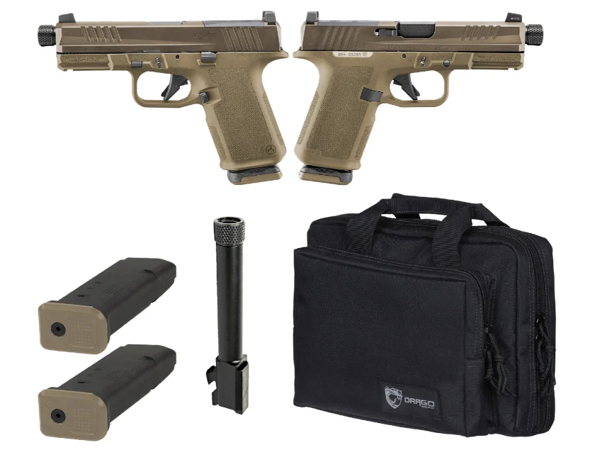 RUGER RXM TACTICAL BUNDLE 9MM PISTOL 4″ THREADED, 2 TONE FDE O.R. RANGE BAG, 2-15RD MAGS