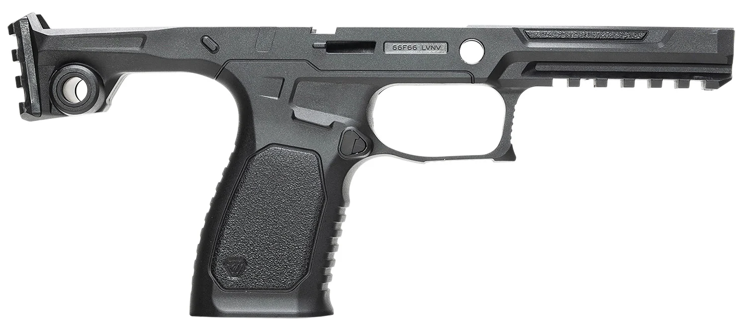 The Strike Modular Chassis (SMC) – BRAVO for SIG Sauer P320 by Strike Industries is a new lite version of the MOST MODULAR P320 (SMC Alpha) Chassis in the WORLD at a fraction of the Alpha’s price. The new SMC Bravo is made of Polymer Extreme which is durable and lightweight intended to receive P320 FCU’s and slides to complete the entire ensemble. This time around users can fully utilize their P320 optics-ready slides to effortlessly install their red dot sights. In terms of upgraded features in the Bravo, the ergonomics have improved with a textured grip which now includes a built-in flared magwell to assist with quick and smooth reloads. The optional Ambidextrous Side Charging Handle with a Slide Cover Mount for the P320 is also compatible so each Bravo user can decide which side they want to rack the slide with. This chassis also more universally accepting of many different types of P320 magazines. Derived from the SMC Alpha, the Bravo remains consistent as it comes with the SMC Rear Module Backstrap molded onto the new chassis as one solid piece. It offers users rear ambidextrous QD sockets and a Picatinny rail mount, perfect for attaching various accessories like our Strike Dual Folding Stock/Brace. The ambi QD sockets in the rear can be used with slings and can even have a lanyard or paracord strung through it.