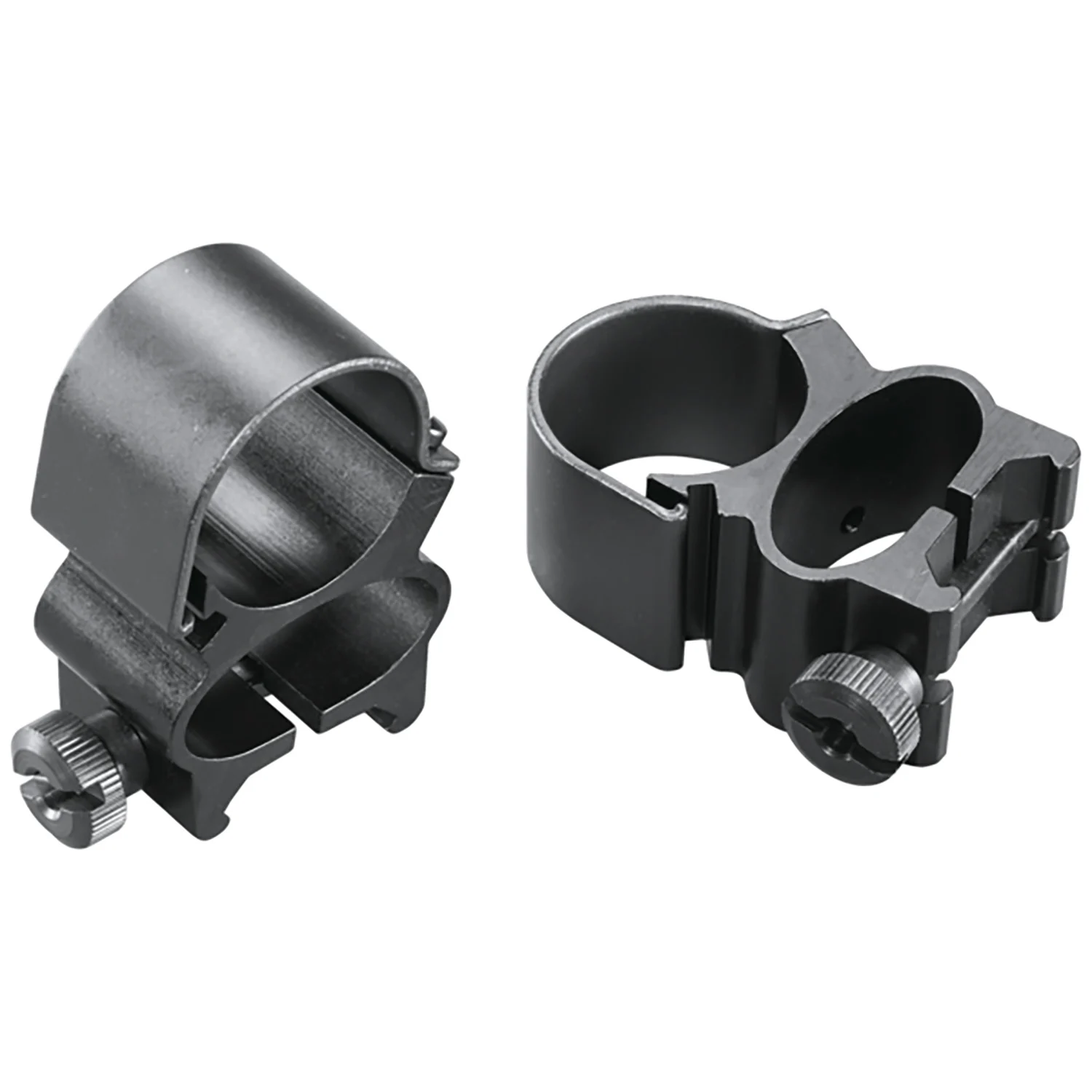 Utilize iron sights or your scope for quick target acquisition with these Weaver Detachable See-Thru rings. The square cross lock bolt fits tightly and securely with Weaver Top Mount Bases. Mounts have steel cap for added strength.